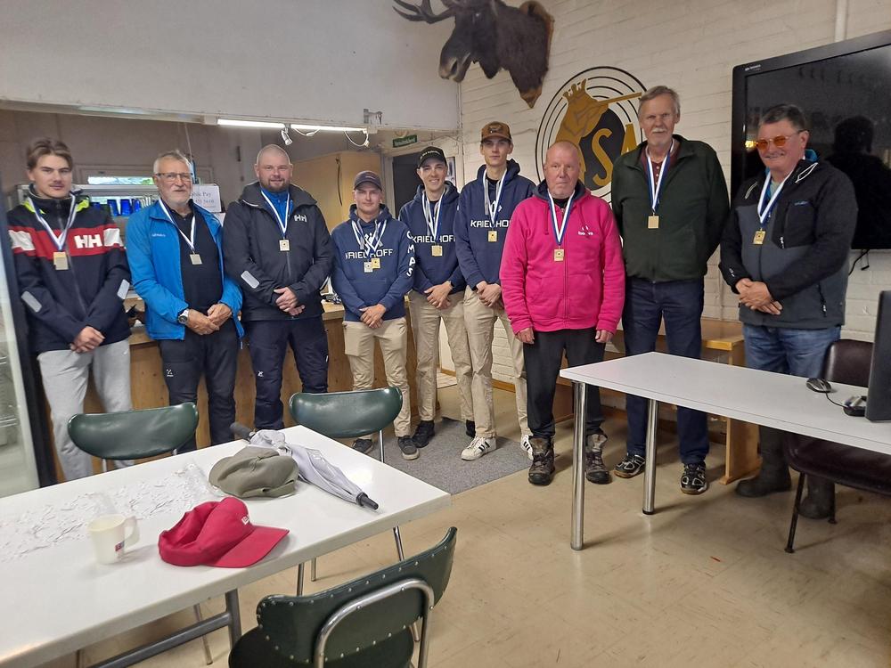 Kansallisen skeetin ensimmäinen päivä on päättynyt. Kevyen sateen värittämä kisa sai huipennuksensa, kun M-sarjan toisesta ja kolmannesta sijasta käytiin tiukka uusinta-ammunta. Voittajaksi oli jo ampunut Hyvinkään Keith Torttila tuloksella 96. Uusintaan ei tarvittu kuin kolme tuplaa, kun tulokset olivat selvät. OMAS:n miehet Kumpulainen (hopea) ja Moilanen (pronssi) veivät himmeämmät mitalit.
